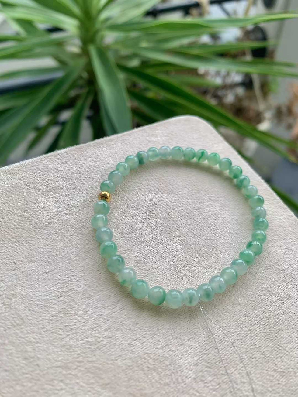 【闲置F912】糯冰飘绿花小珠翡翠手串
